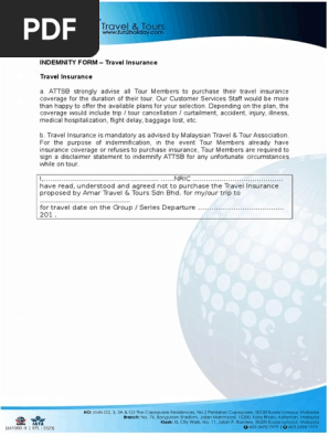 Travel Insurance Indemnity Form Pdf